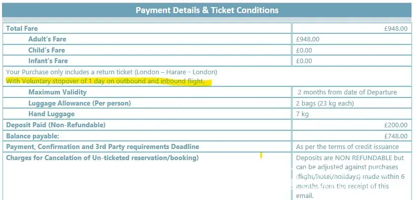 TravelHouseUK Return Flight booking to Zimbabwe