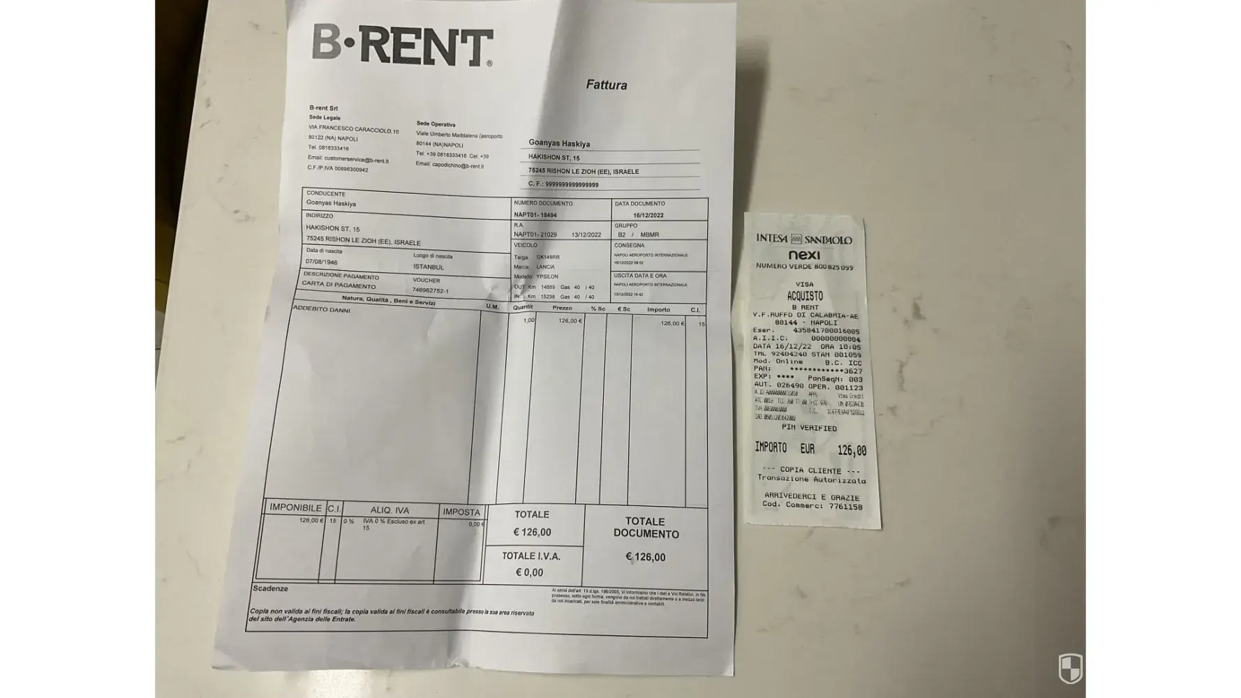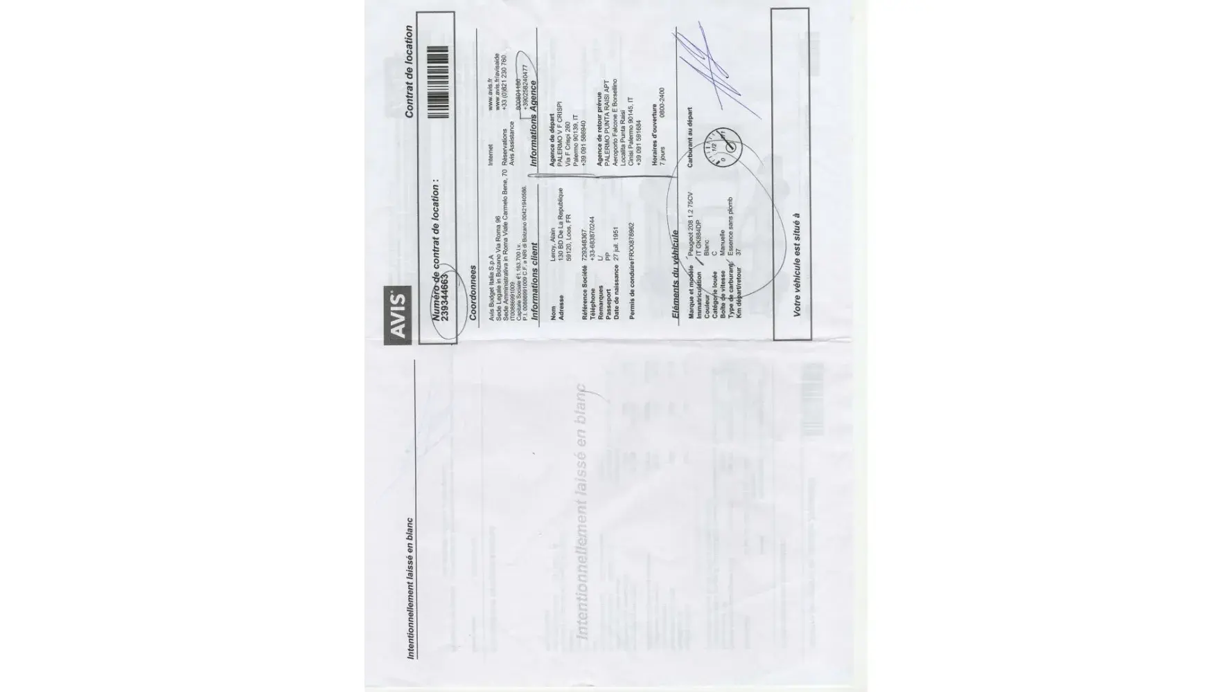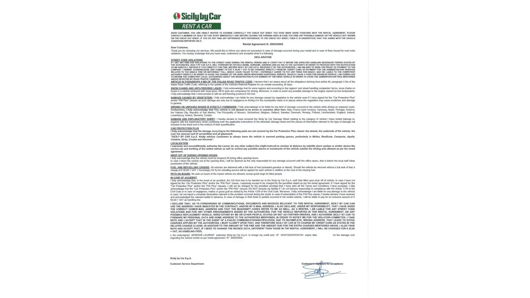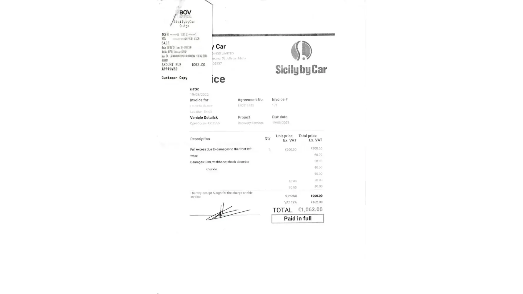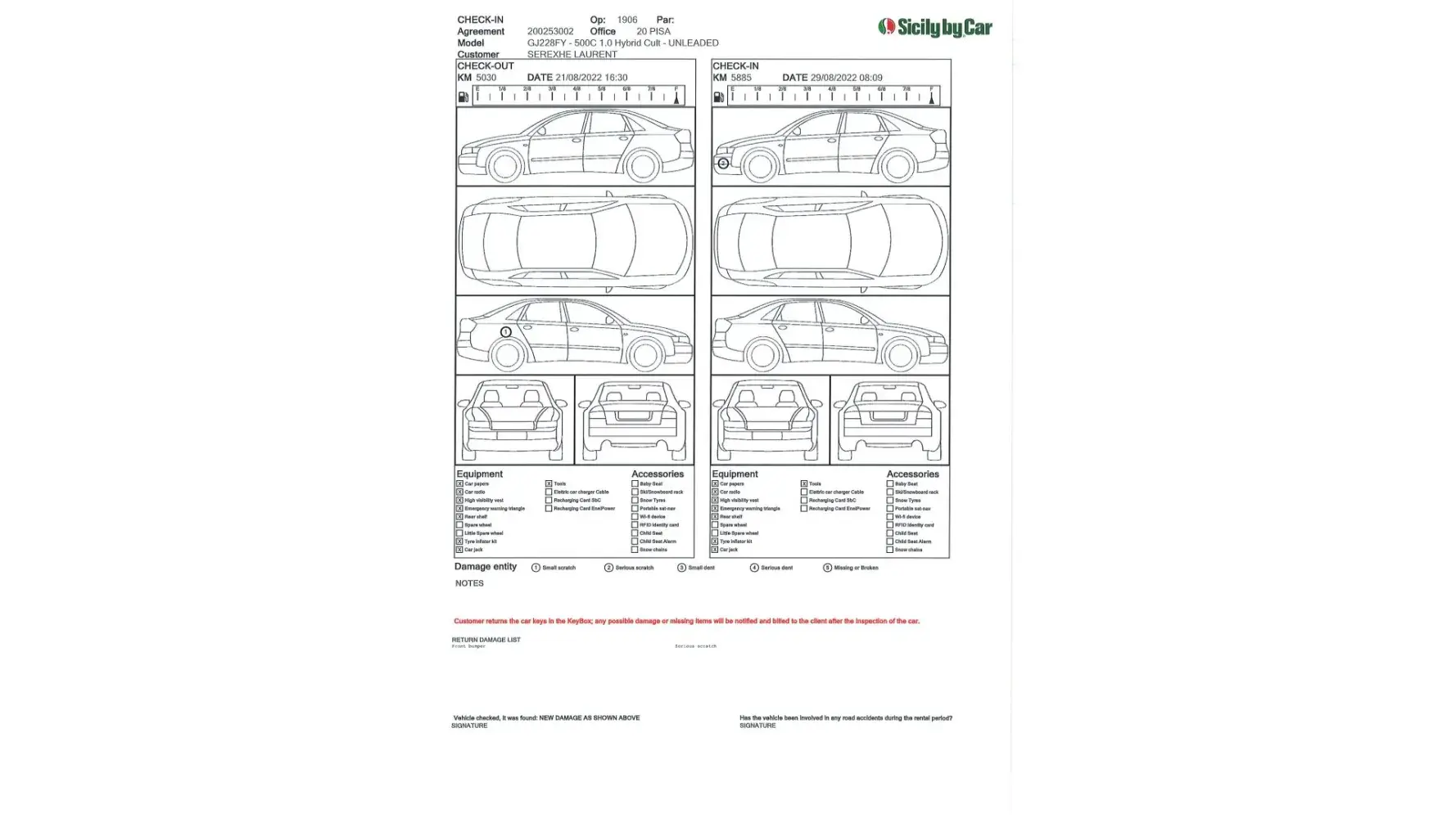 You will find attached the letter from the rental company Sicily By Car (see attachment "Sicily 1 to 6.jpeg").