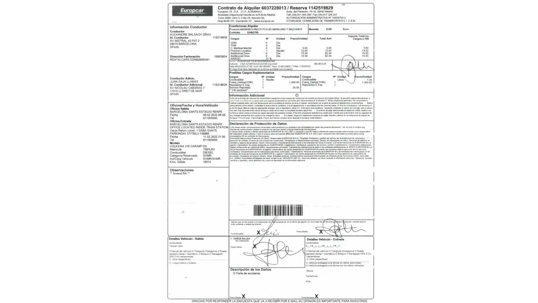 Assurance premium signed in europcar barcelona