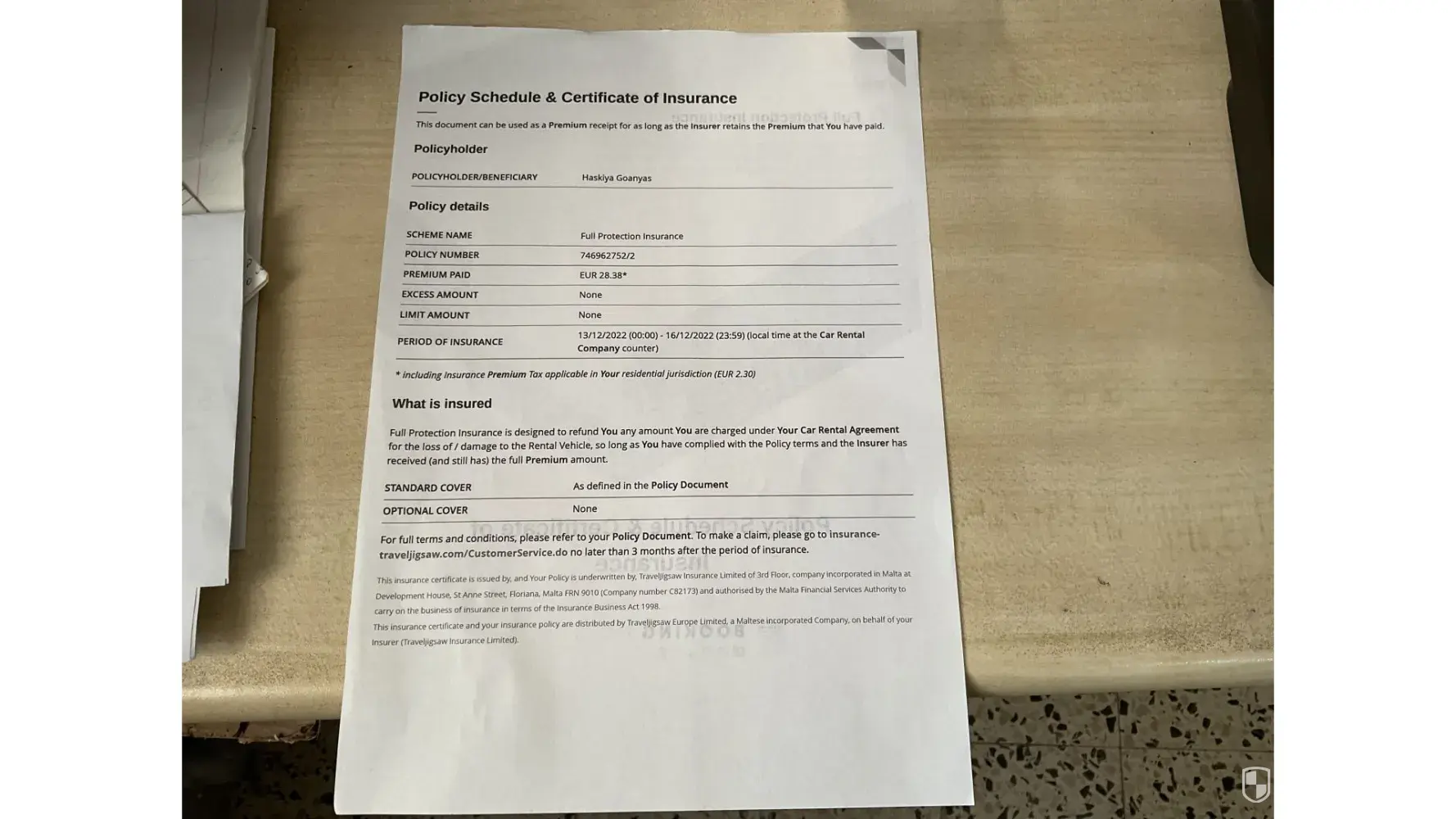 Hi, ther is a little scratch on right mirror, this company charge me 126 euro, I have a full insurance by travel jigsaw, policy no [protected]/2. Rental date-13/12/22–16/12/22, I paid 126 euros, iam providing 3 documents, as for you to see, thanks, mr haskiya goanyas, please provide me the refund!