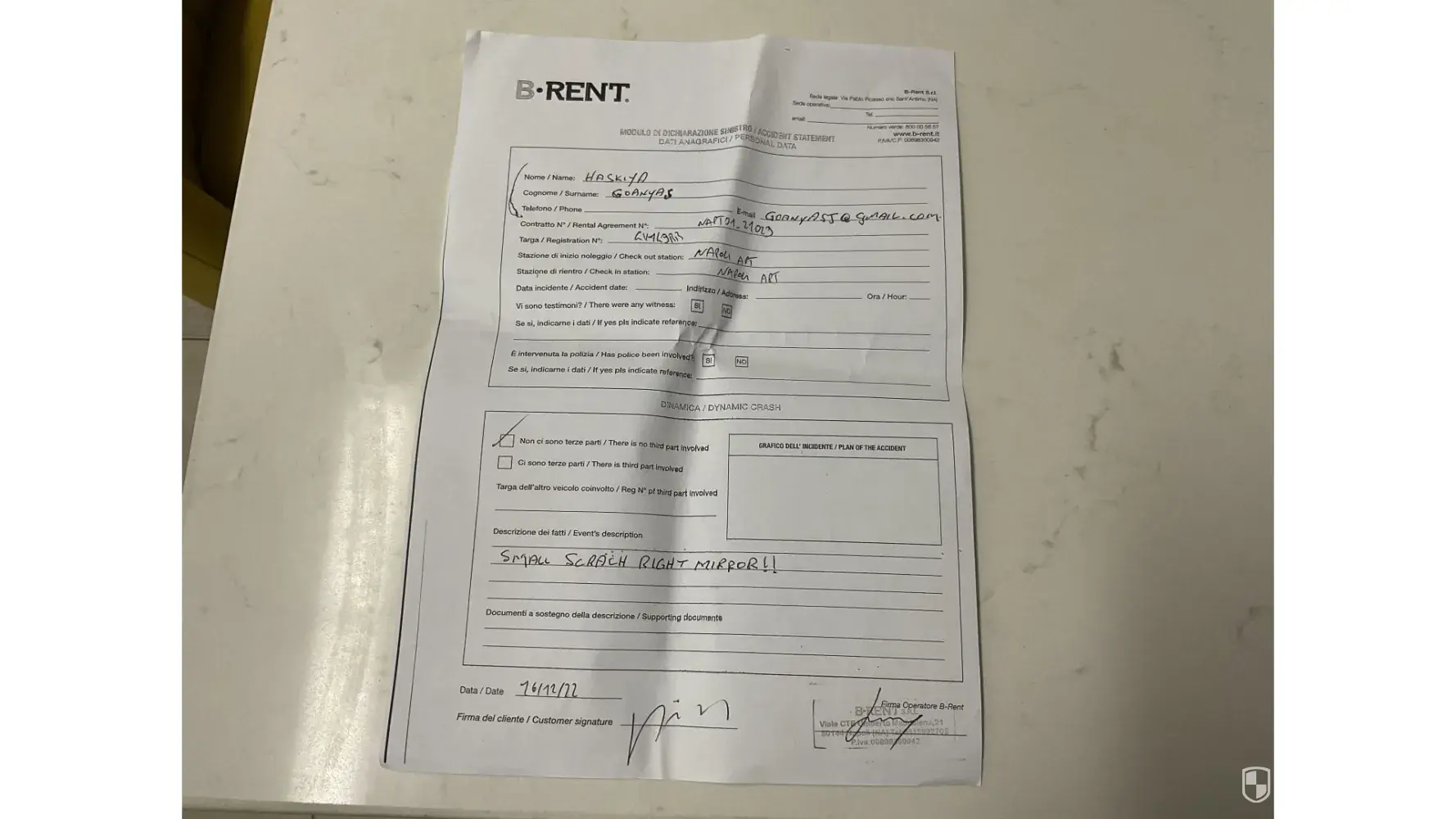 Car accident - rental agreement nr. [protected]/3