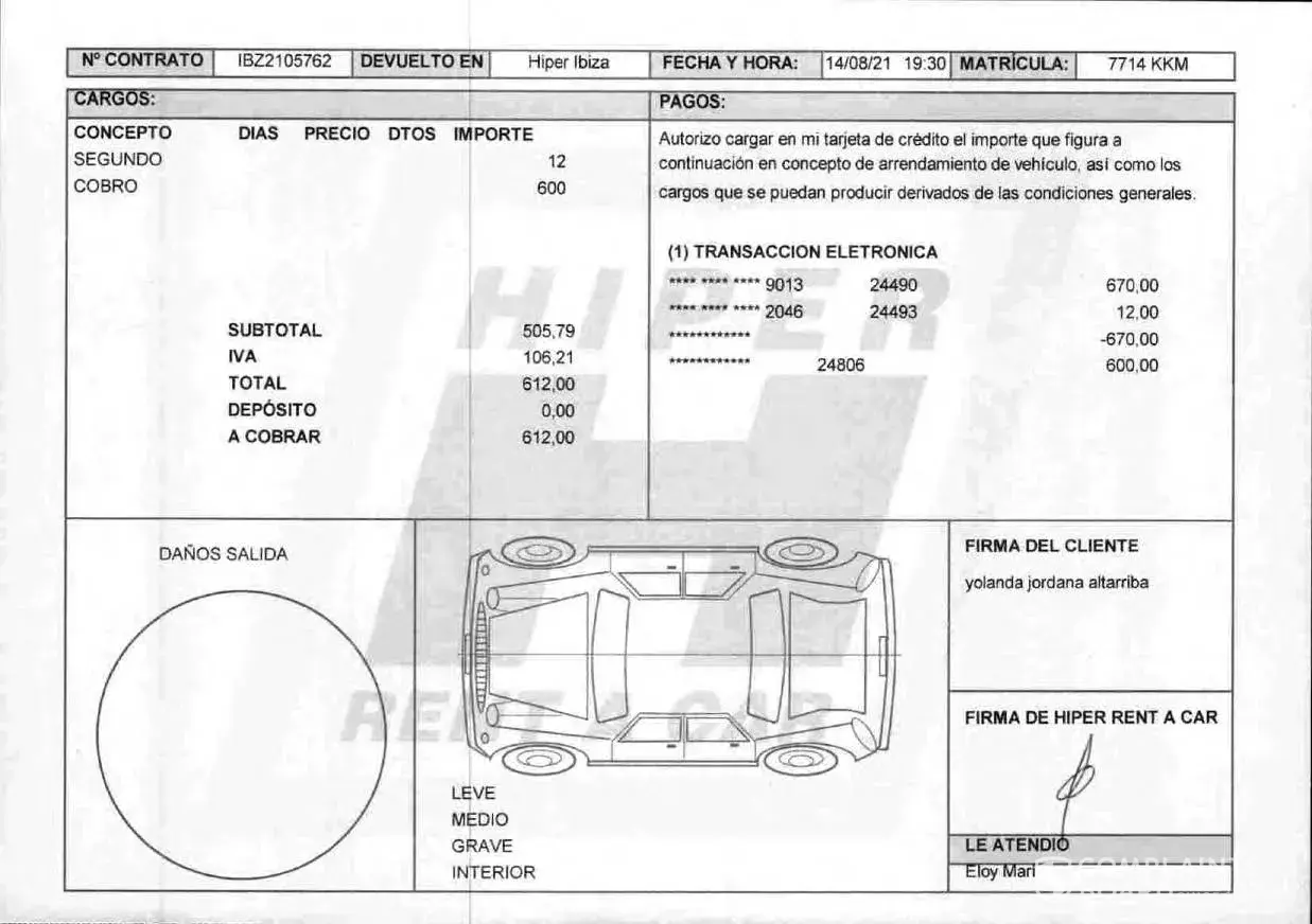 -Del coche de alquiler se dañó la parte trasera a la izquierda y del otro coche la parte izquierda delantera.