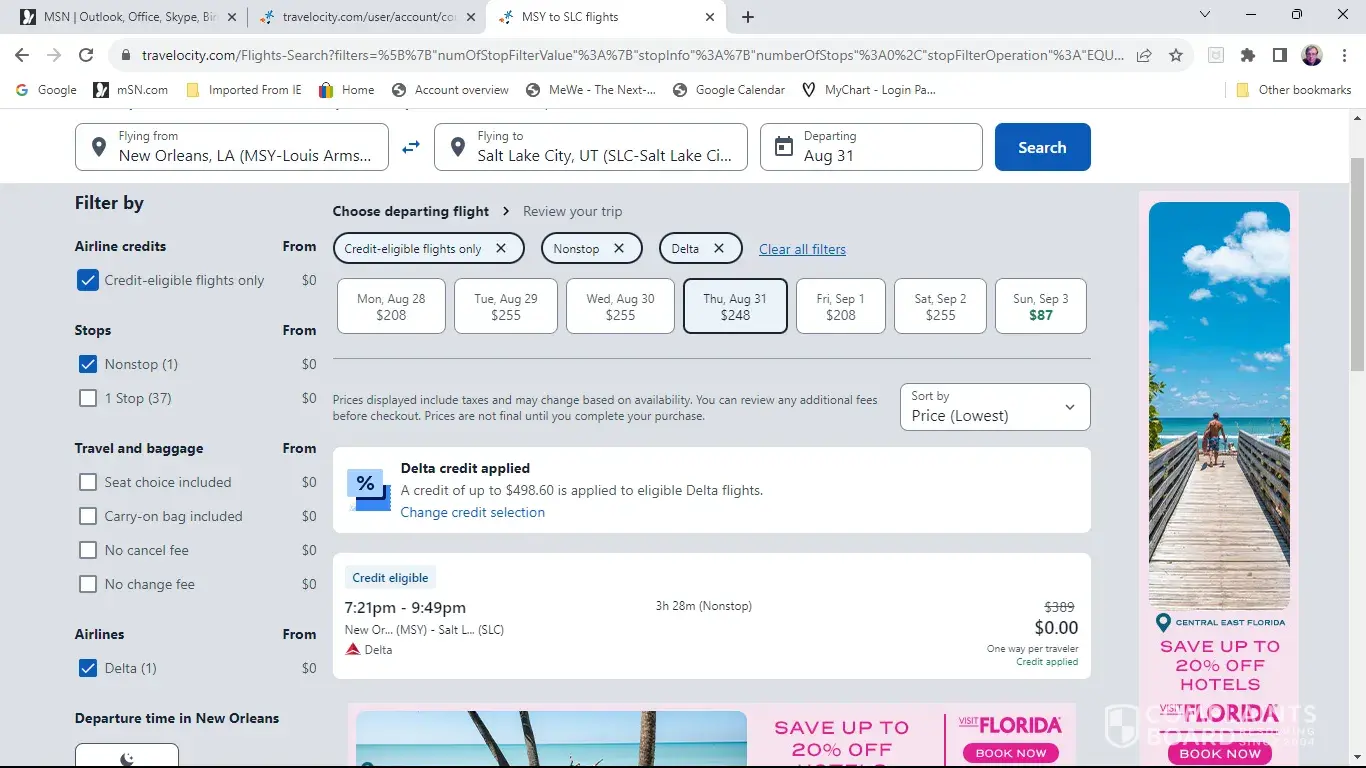 On 8/15/23 I used Travelocity to book 2 roundtrip flights from Orlando to Cleveland.