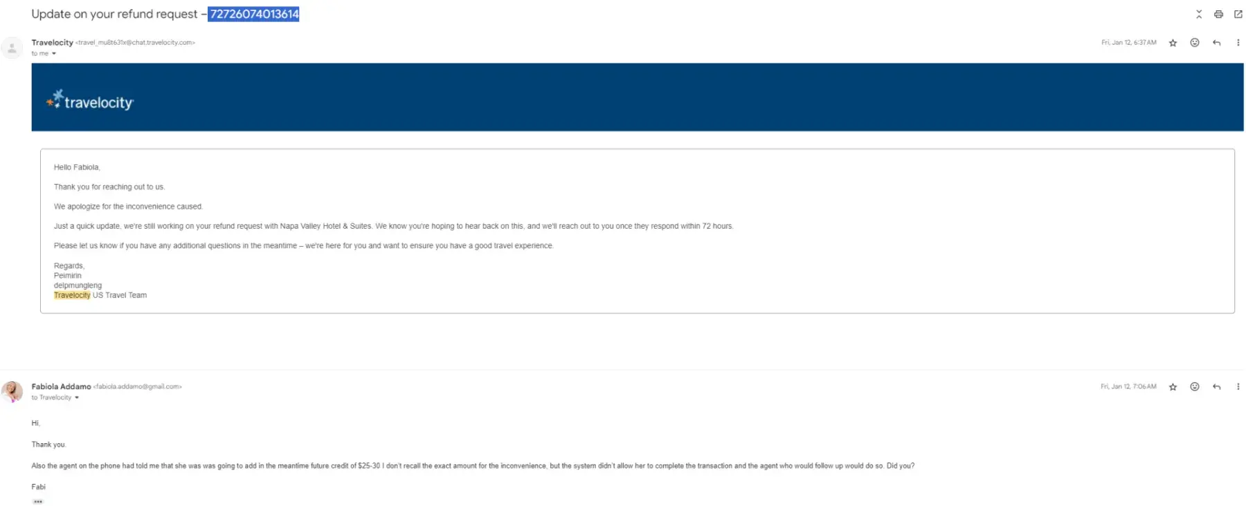 p.s. I have the confirmation email from Travelocity and screenshots of the conversation with Jenny for evidence.
