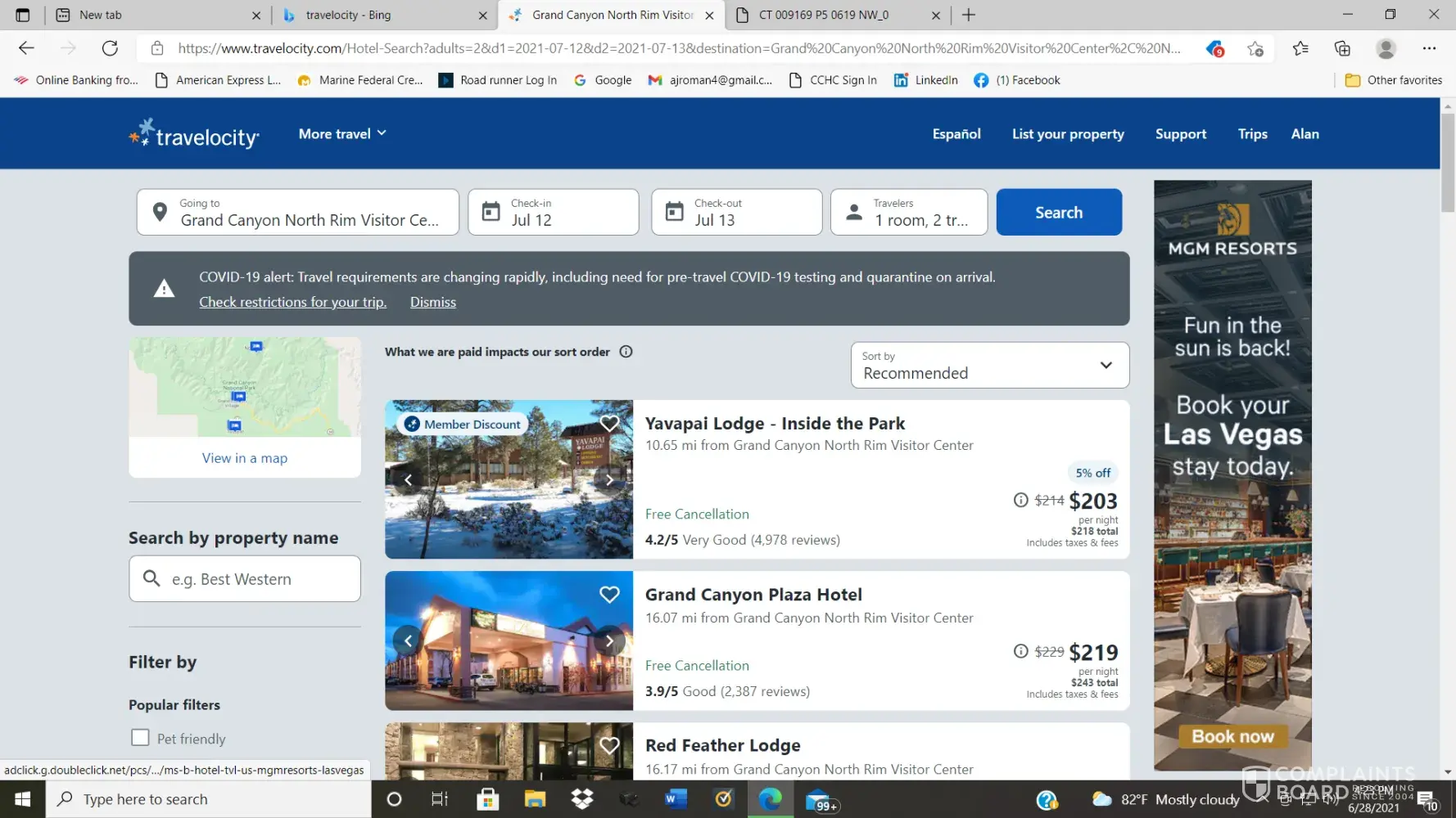 I booked a room at the Yavapai Lodge because it was supposed to be 10.6 miles from the North rim of the Grand Canyon. Please see enclosed screenshot of your active Travelocity site.