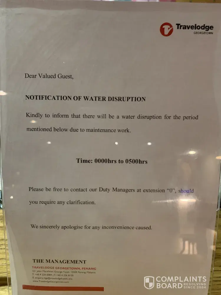 Hi, Mr Gan Chin Meng here, my check in date on 10 May 2019 until 13 May 2019, I just check in to the room, I book the room for superior queen but give me superior twin, it's fine. But now, hotel management mention that from 12am till 5am whole hotel will stop for using water, I ask for the management if I back late I need to shower, how to shower. At least hotel need to provide a room for guest who need to shower. I really feel disappointed with your hotel group, I will going to publish to social website due to your hotel staff really don't know how to manage this problem. And please check your hotel bath towel, look at the towel, old and broken. My boooing number [protected].