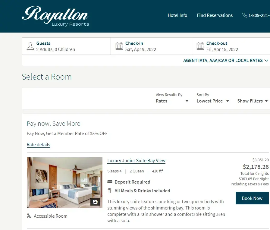 We booked which should have been a beautiful vacation for Christmas but due to the latest round of the Covid - Omicron Pandemic the Canadian government advised not to travel. My wife who works in a Seniors Building could not take the risk and travel so we unfortunately had to cancel again. We were penalized two nights stay for both rooms as we had to book two rooms with a family of 5. That has cost us over $1500 US that we have now lost. I asked multiple levels of customer service to reconsider and only charge us for one night for both rooms but they turned us down. As a Travel Smart VIP member we have certainly not received VIP treatment. While we have a credit to use the balance in 2022 it is painful to be out so much money especially after the exchange to Canadian. I guess Management at Travel Smart and Royalton really don't care much about their clients and forced me to post on Social media the lack of empathy and support. Note, it was our decision to cancel due to health and safety but we should Not have pay such a large penalty for that.