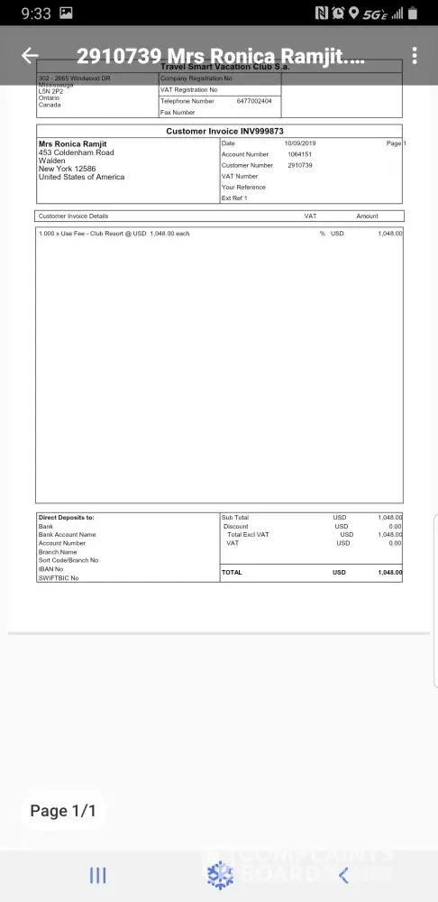 This complaint is now resolved. TravelSmart VIP have emailed me throughout the process and after several correspondences I have had all my monies returned. The email address was : contracts1MBJ-RNG@travelsmartvip.com Thank you Complaints Board for your assistance and TravelSmart for resolving the problems