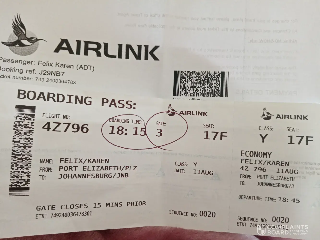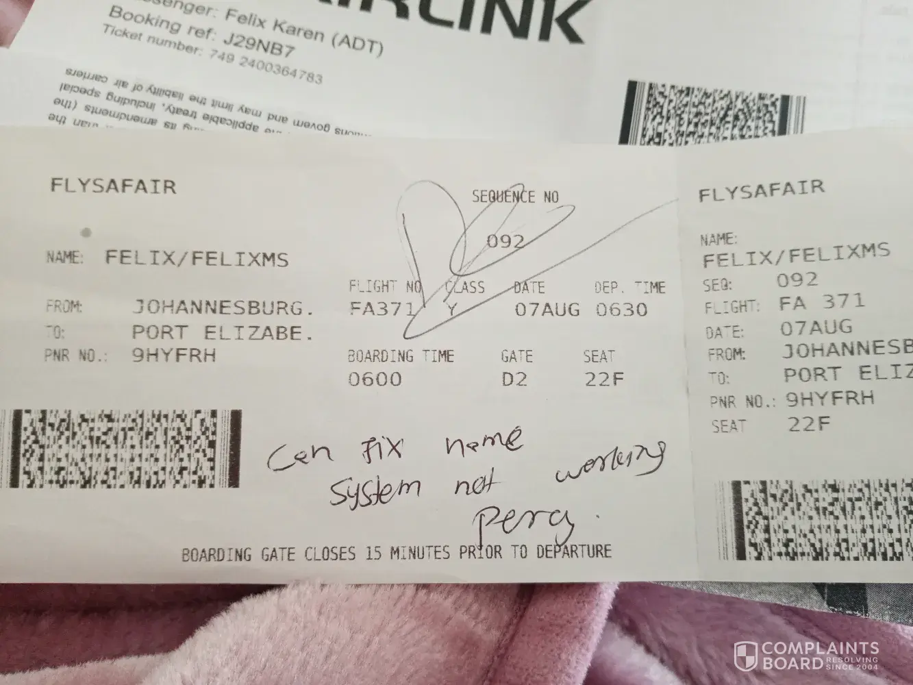 I have recently made use of travelstart to book return flight fron jhb to PE online. To my dismay I discovered that my name (Karen) and surname (Felix) was captured as Felix Felix on boarding pass, but I have used my visa card to pay. I gave tried to get hold off travelstart to rectify issue, but they only use WhatsApp which was a nightmare as they waiting time for response was frustratingly long. When I went to board I was told I have to pay R150 before I can board to fix name change. Upon return 2nd airline charter charged me a ridiculous price of R1150 for name change before I could board. When I got hold of travelstart eventually the said I must contact air charter. This was uphailing that they can use my visa card to excess my acc but my boarding pass was wrong