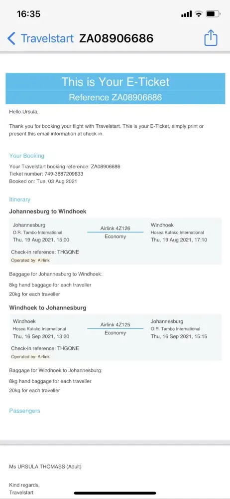 Avoid Travelstart at all cost. Let the buyer beware. I booked a business class ticket for 30 November 2021 which was cancelled due to COVID. I am still waiting for them to acknowledge that I exist four weeks later.