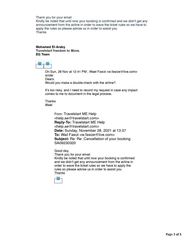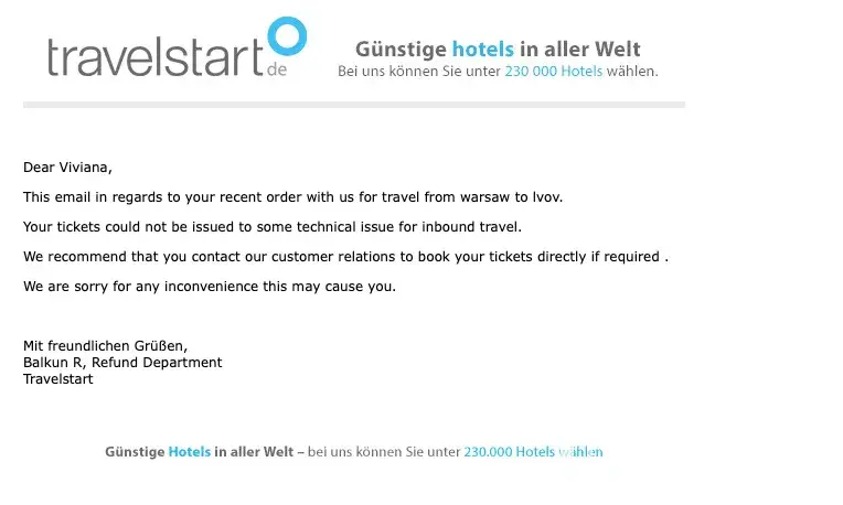 Desired outcome: I want the ticket reinstated without costs to me as Travelstart fail to respond in time