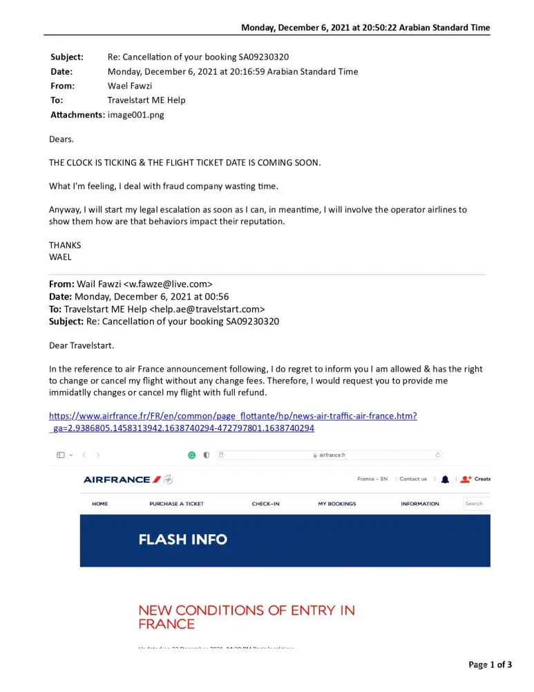 according to a new covid pandemic, I requested the travel agency to cancel or change my flight but they always delayed in the reply to refuse. I did attach one of my communication with them for your kind help.