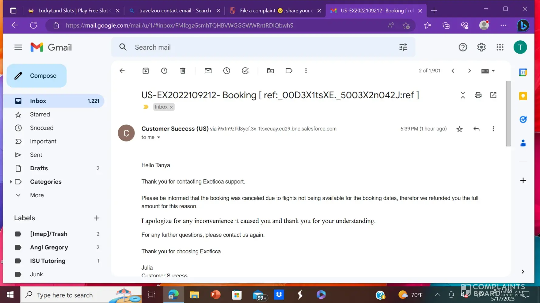 This complaint has been resolved automatically due to user's inactivity.