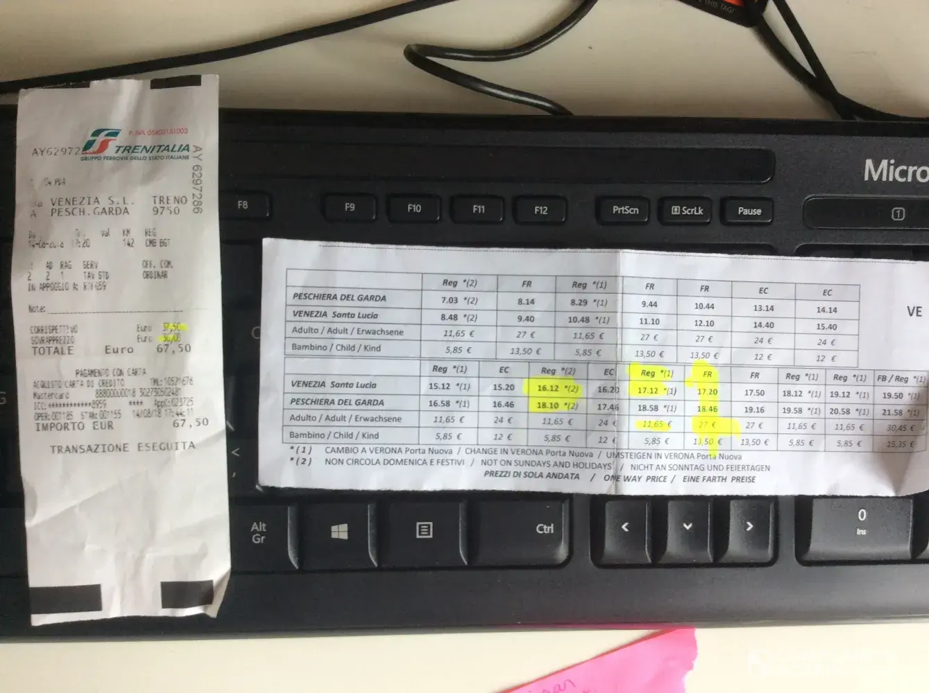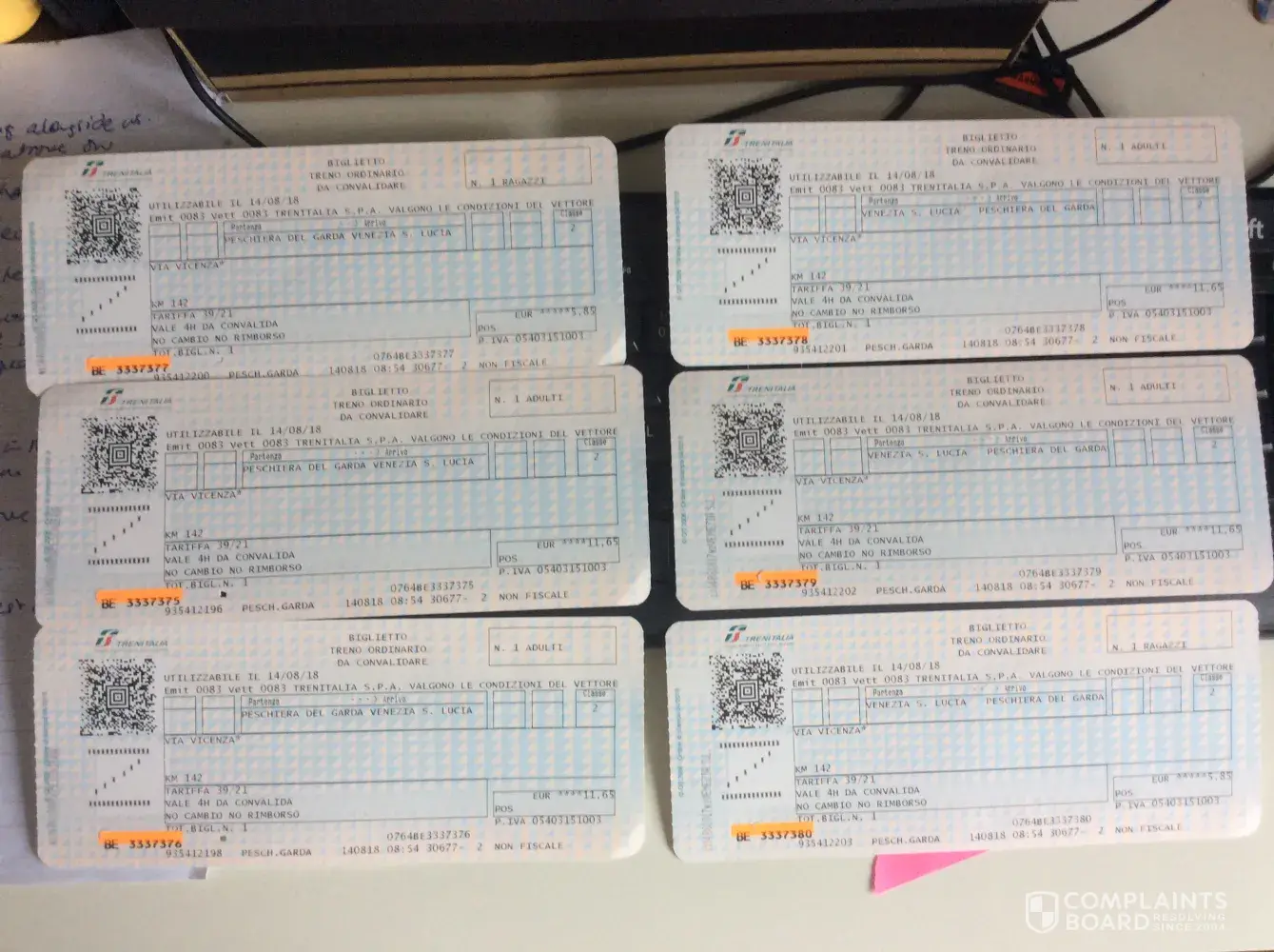I want to complain about our train travel from Venice to Peschiera Del Garda and the tickets.