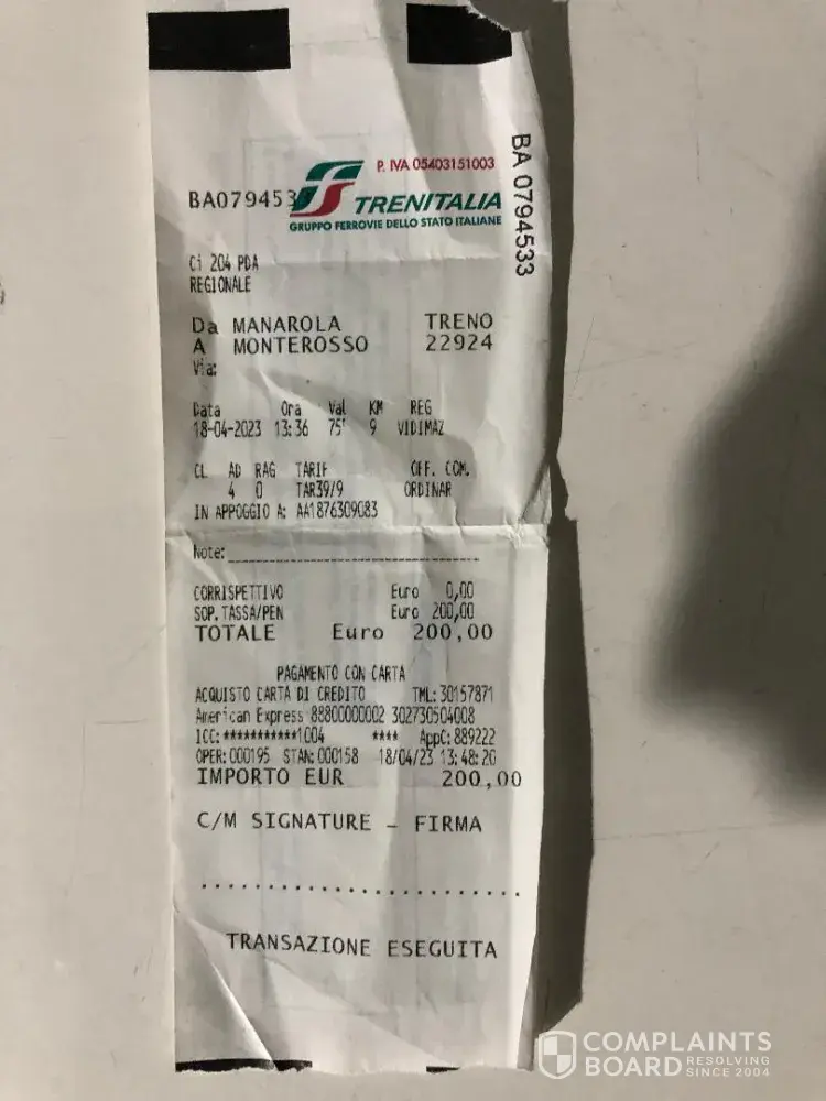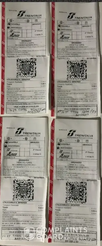 Read full complaintincorrect train tickets from Rome Termini to Rosarno
