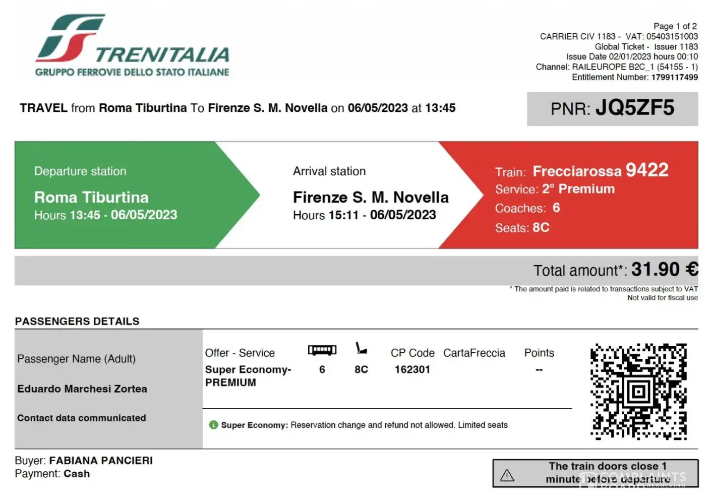 Trenitalia S.p. A. Direzione Business AV Customer Service e Vendita Diretta AV Post Vendita Dear Mr / Ms Leopoldo Niro Thank you for sending a response to our complaint of early April 2023 as per your below mail as late as end Jan 2024! In my complaint, I had explained that there was an error in Trenitalia website which led to the erroneous activation...