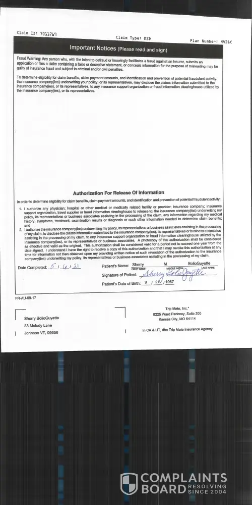 I purchased travel insurance with tripmate for my recent trip. I became ill while in Mexico and incurred medical expenses to the sum of $3000 plus. I filed a claim on May 7, 2021. When checking the claim status online, there is o information. Claim # is 7011769. I have called Trip Mate multiple times over the course of two weeks and cannot get any one to speak to. I have emailed with no response. How am I supposed to resolve this when nobody will respond to my calls or emails?