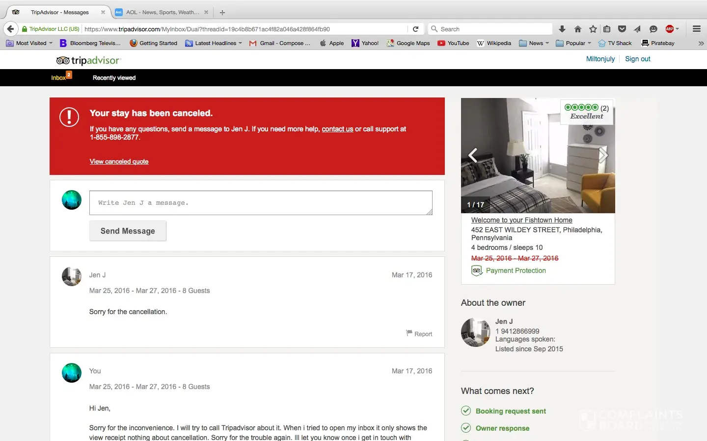 Here is my sad story. Usually, when we take a vacation, we book a nice hotel at the beach, enjoy the service and feel secure that our best interest is being put forward. This summer, I decided to try something different. I wanted to rent a beach house and break away from the norm. So I thought I would try Trip Advisor since they claim to be the best. Here was the outcome.