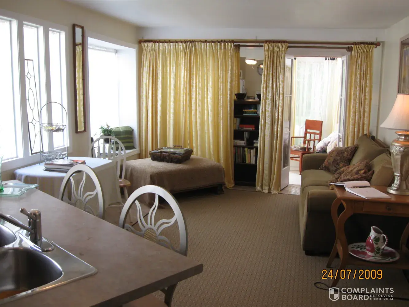 When they left they had damaged the sheets with bleach, taken all the toilet roles in the storage cupboard and chipped paint off the stairs and damaged other thing to make our lovely place look bad. They took pictures of inside storage closets and made a mess of our deck furniture. and all the bad pictures which are staged they put on trip advisor with a horedous complaint. We tried many tines to tell trip advisor that their story was not true but trip advisor kept sending back my emails and not alloing me to defend my lovely B&B Cottage.