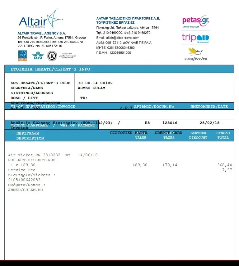 Booking Numbers: Tripair Reference code [protected] - Reservation code KQV7DU tickets numbers: [protected]- [protected] Names: Mihaela Anca Imbrea - Noah Badran.