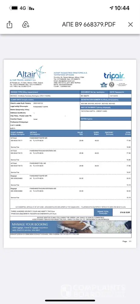 38 Tripair / Altair Travel Complaints