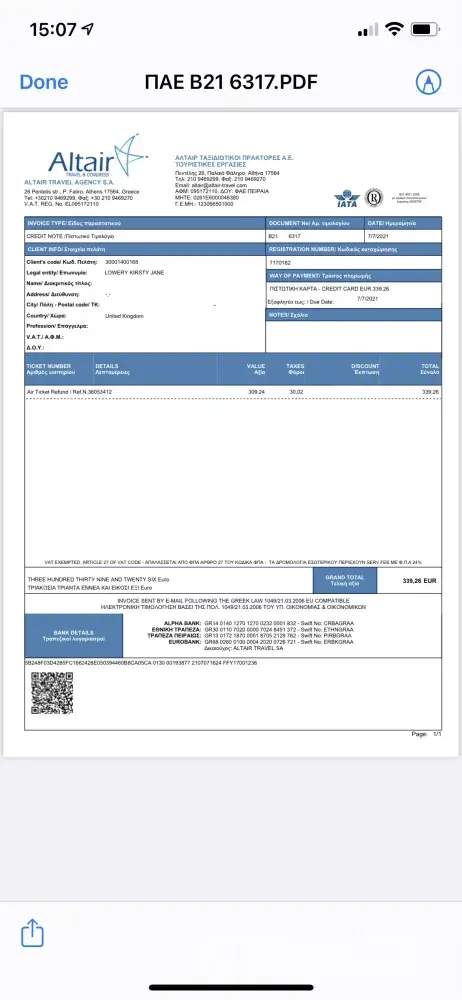 Hello, my air company Aegean created the code which provide me with the refund for travel agency Altair/Tripair for us. Also, kindly be informed that my refund became authorized to yours from them on 31 st of May.
