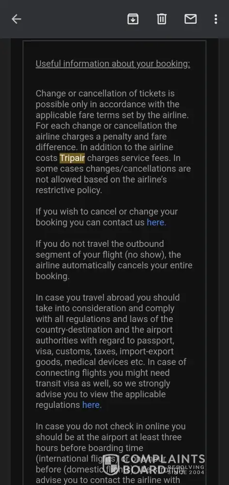 buying a ticket with tripair company cost me time, money and stress.