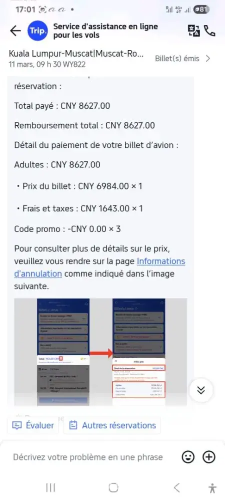 I am contacting you regarding my Kuala Lumpur – Muscat ticket. The flight was cancelled by your company, and I have all the proof of this cancellation.
