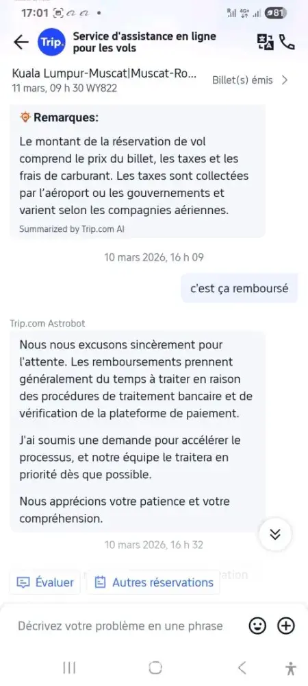 Desired outcome: Refund of the Ticket amount, please.