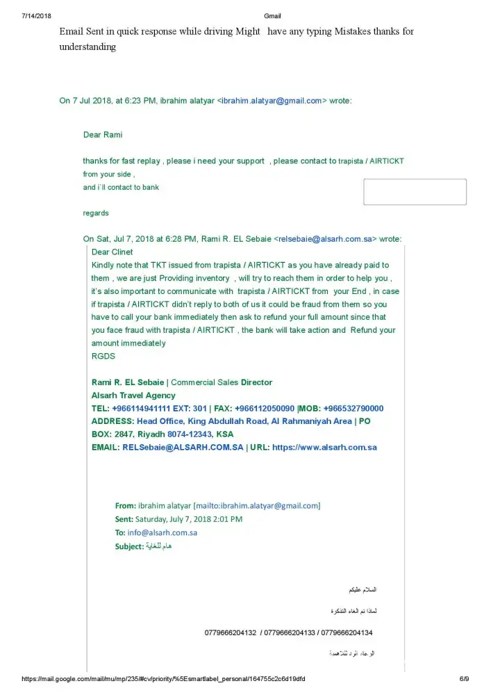 and i contact with egypt air he give me company name Alsarh Travel Agency