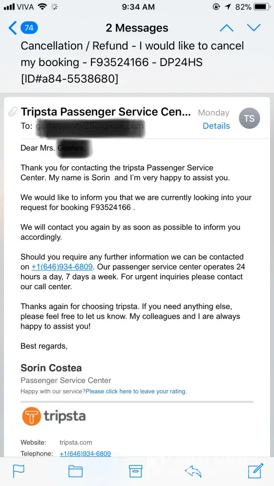 I have submitted a cancellation and refund request on tripsta page, I did get a reply that you will get back as soon as possible but it has already been 3 days now.