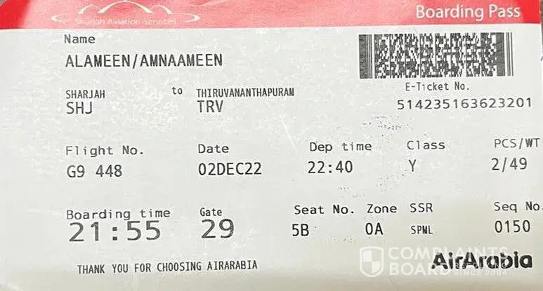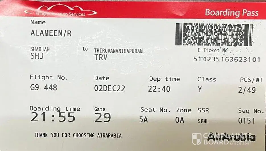 My wife Nageena Jehas travelling Trivandrum Sharjah via Indigo flight 6E1401
