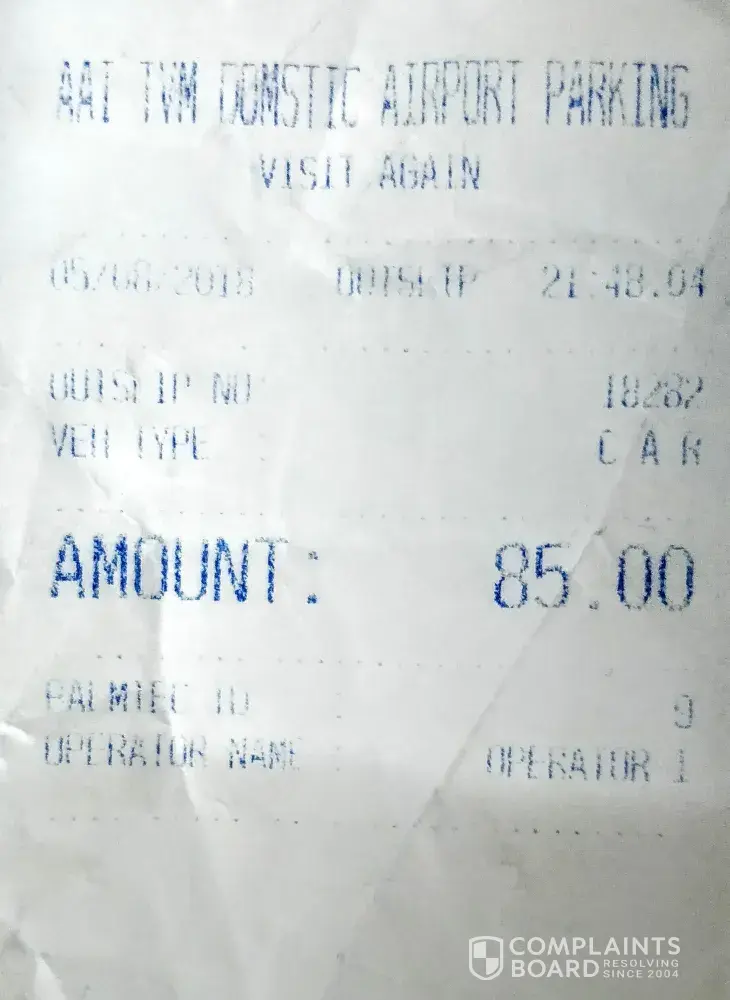 I was charged INR 85 for parking in the domestic terminal precisely for ten minutes. I was in line at the exit barrier for two of those ten minutes. This is nothing short of organised looting. I enclose the receipt, a hardly decipherable printing on a slip of paper. I expect a full reimbursement.