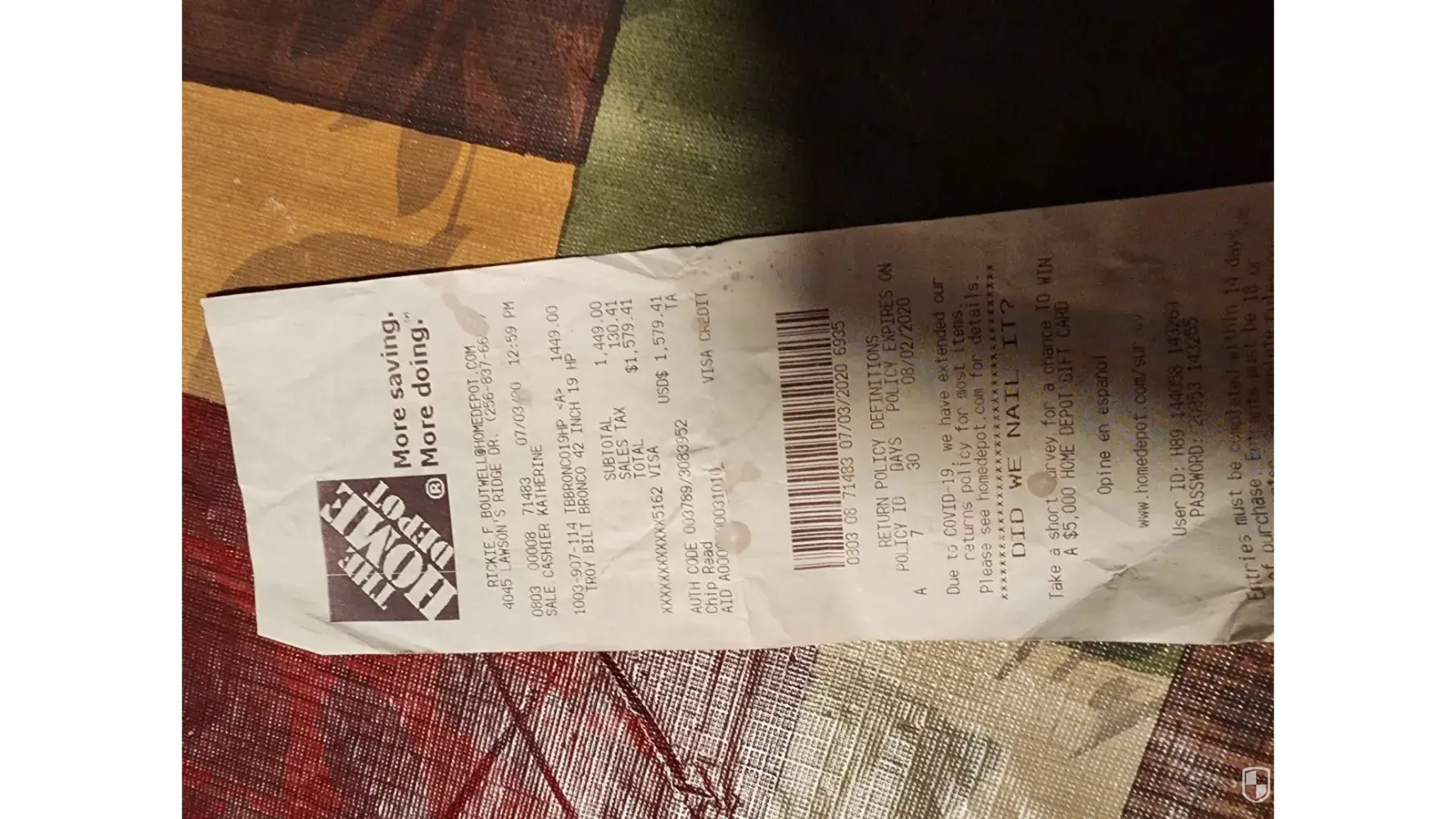 I have enclosed a copy of the receipt.