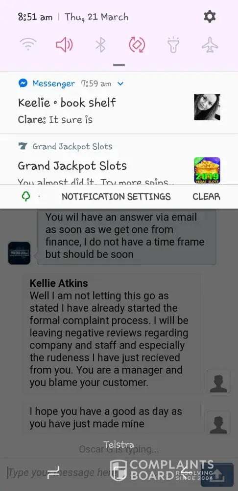 On the 17/3 I also sent through all documents as per their request after I specifically asked what docs were needed.