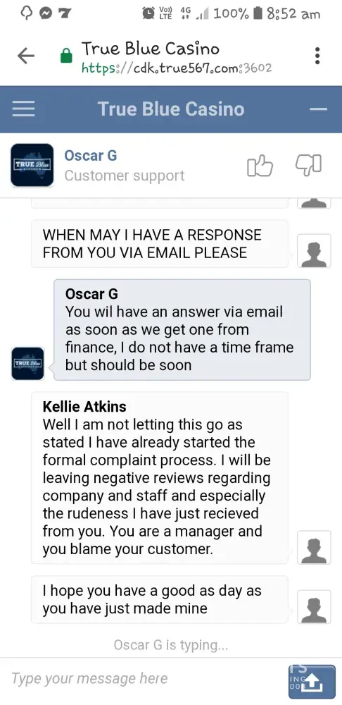 On the 20th I went to the customer service team to confirm all was well and to get that they did request hooyu to validate me as well as to query why one of my requests date and payment type had been changed . I have screenshot the whole conversation of which I was called a liar, spoken to extremely rudely disconnected from conversation passed onto the casino manager insulted by him and lied to by him.