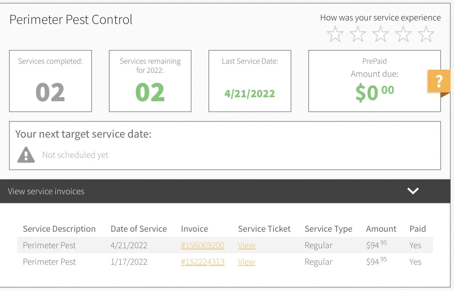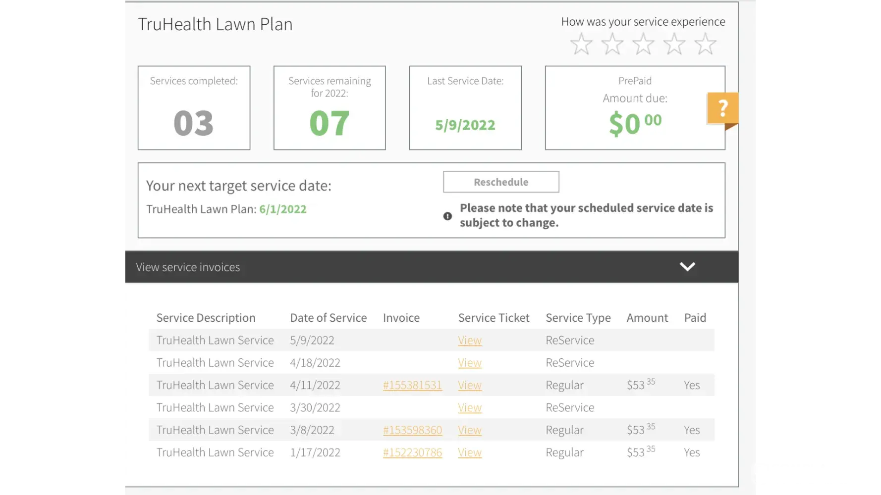In January 2022 I pre-paid $1000.62 through 31 December 2022 for 3 services — TruHealth Lawn Service, Quarterly Perimeter Pest, and Annual Fireant treatment.