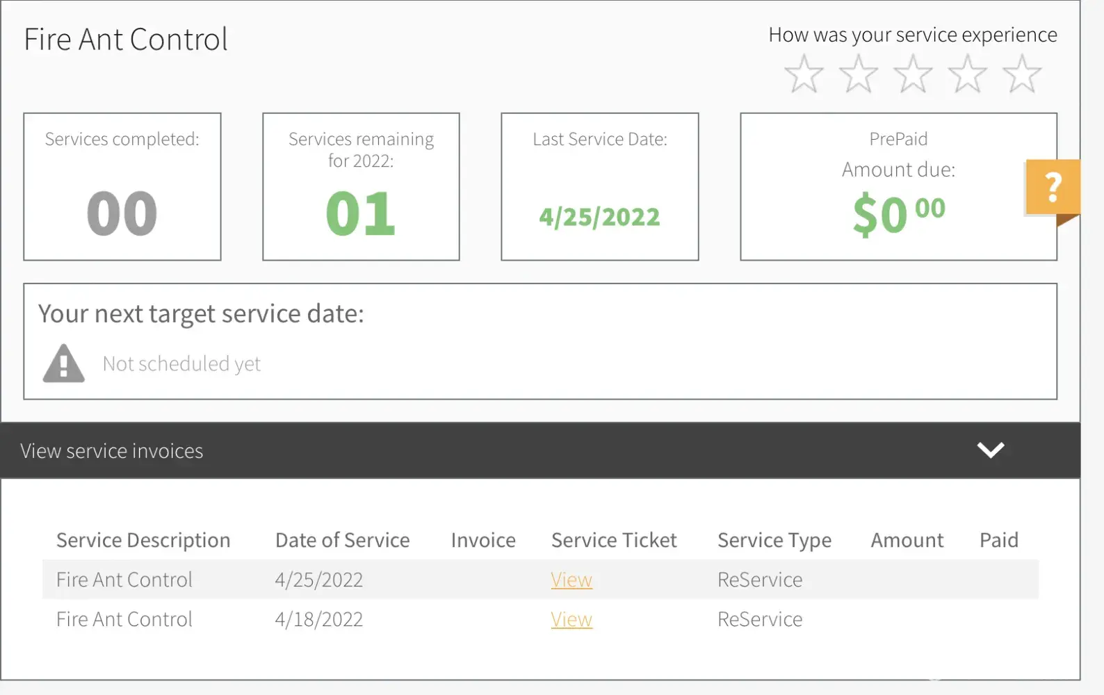 Read full complaintLawn service, fire ant control, perimeter pest control