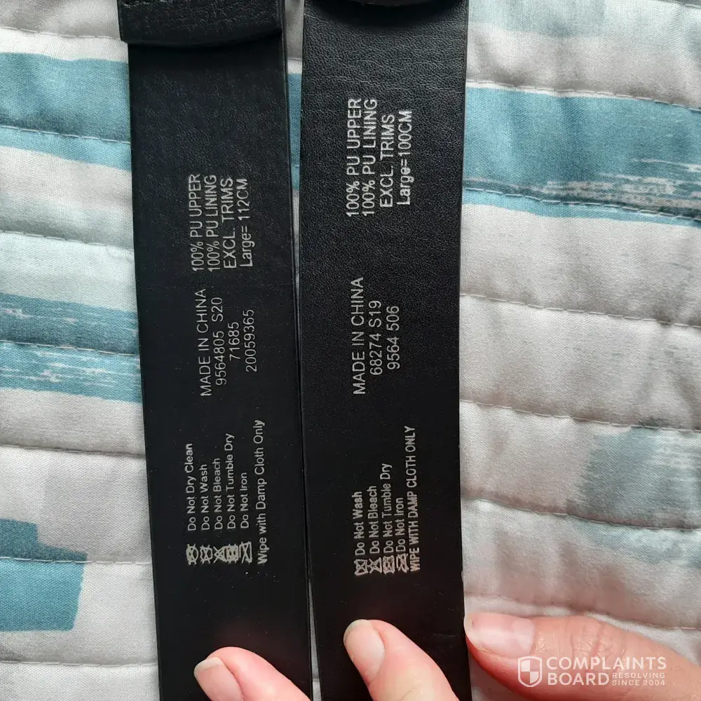 I have been a loyal Truworths customer for years. I always buy the same belt in brown and black. I have also been a size 38 all my adult life. Today I was quite perplexed when I could not find a belt that fits. A medium was too small and the large way too big? I have always worn a large. I took the large belt home and compared the back of the belt to the one I have at home. There is a 12cm difference between your usual Large (100cm) and the new Large (112cm). Pictures attached to show product numbers etc. How can you have such a big difference between sizes of idential make and brand? The difference between M and L is also ridiculous. Please check with your supplier to rectify