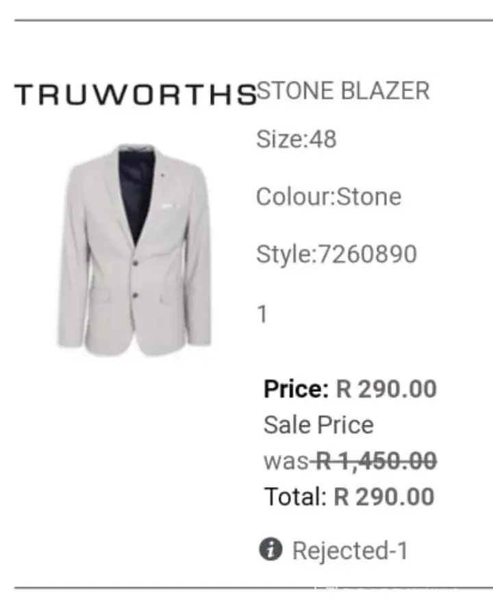 Did an online purchase on 29/08/20 order no. o102273224 one of the items a stone coat style no. 7260890 was rejected don't know why when I enquired was told to do a fashion delivery which I did to a nearest store and delivery is free, on the online purchase the price was listed at R290 and when I did a fashion delivery I was charged R390 why is this, I want to be charged the price that I initially saw it for at R290 so please sort this out asap, because from my understanding as a customer I know I'm right and it's a matter of principle that you'll keep to the price that was listed, also sending photo of the coat and price. Fashion delivery f100236441, note I did an online order and was told to do a fashion delivery on the mentioned item it was not my choice. Regards