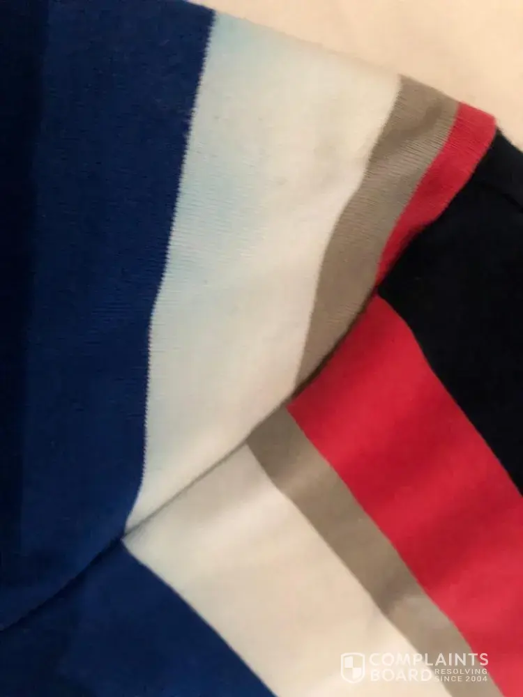 I purchased a Daniel Hechter top which I have not even worn and placed in washing machine. I washed it in a cold water and after it came out the machine the colors had run and the top is damaged. As I had tried the top on when I purchased this i threw away the slip and therefore I cannot return this
