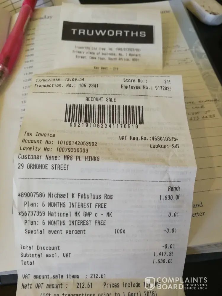 Kindly assist by looking into this matter. I've always been happy using Truworths products and services... I don't want to see myself parting ways with this Truworths for not resolving this issue.