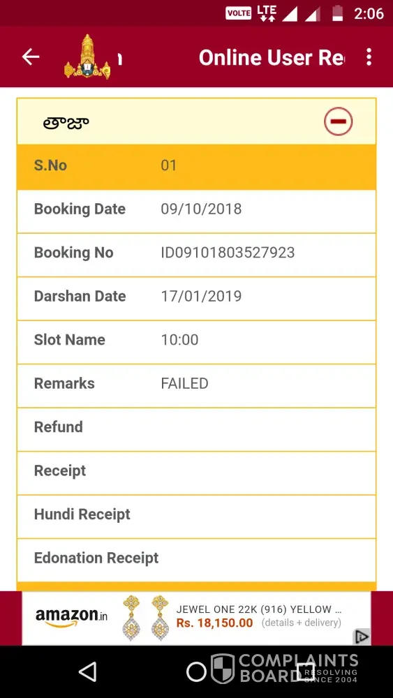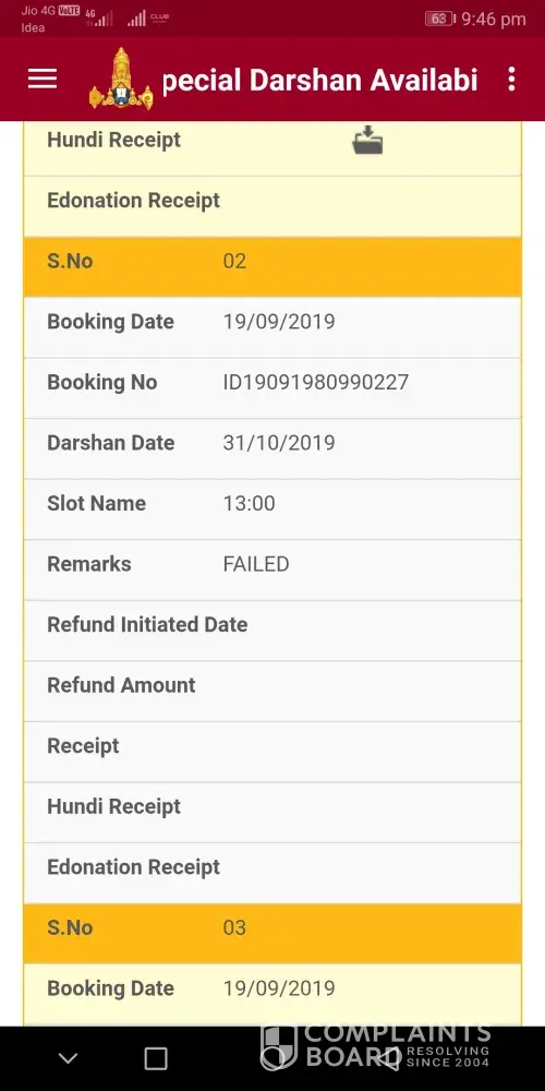 I had booked special entry  dharshan ticket  for 10persons (Dharshana date 19.01.2018 at 15.00) on 12.12.2017. Booking No ID12121730179777. But as the transaction was stopped in the between. and status was "refund". So please refund my money 3031rs. It had been already 36 days passed. there is no information from  your  side. Please  refund it as soon as possible and do response to this mail.