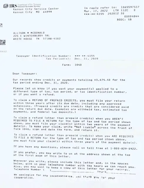 IRS never received 2020 tax return we paid to efile through TurboTax