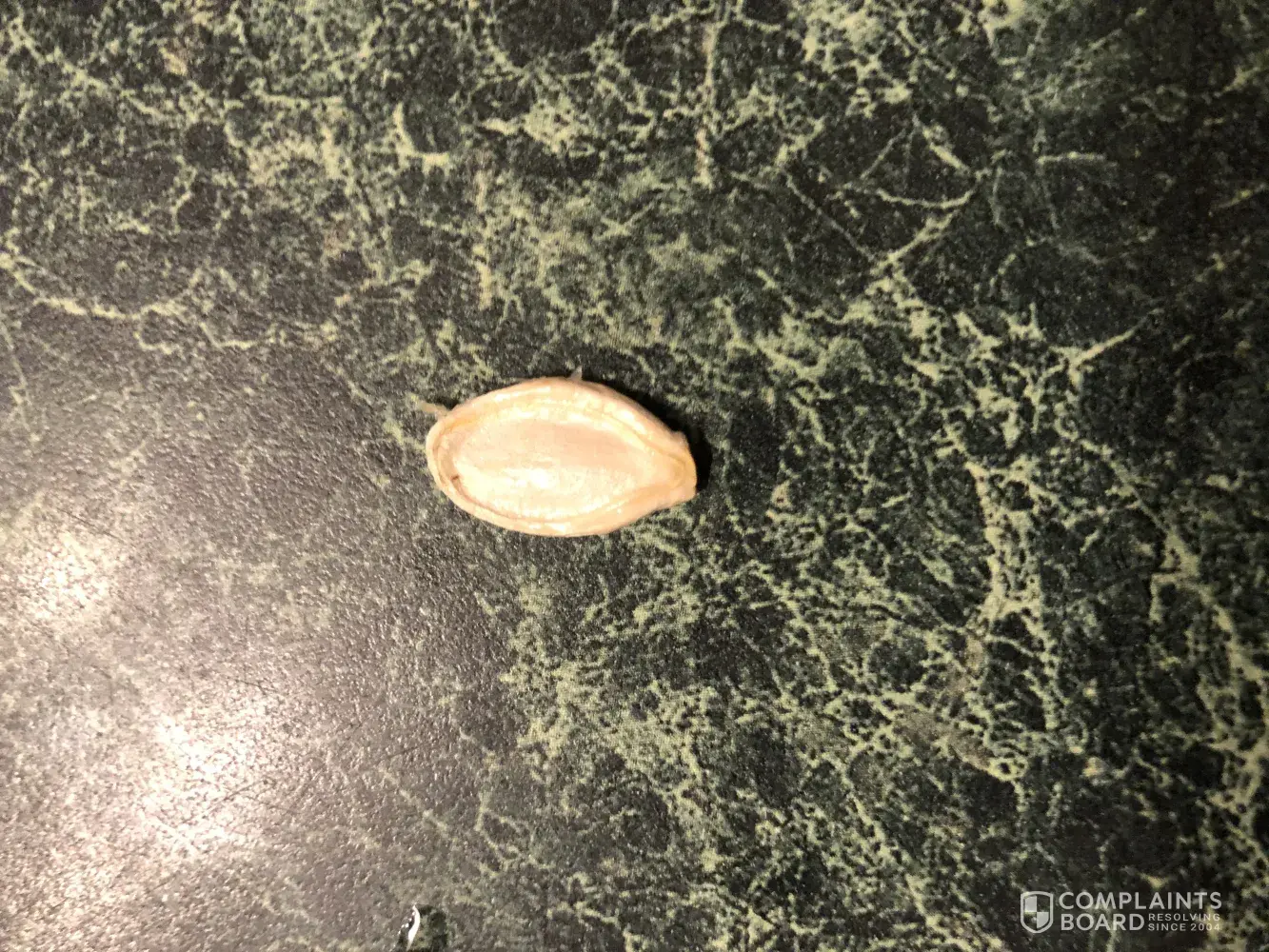 While making ice cream cones for Grandchildren over the weekend, I was scooping into the middle of a gallon carton of Vanilla ice cream when I noticed something that was the same color as the product but upon closer inspection, I realized that it was a piece of a pumpkin seed outer shell. I have a picture if you wish to see it. It definitely happened during processing.