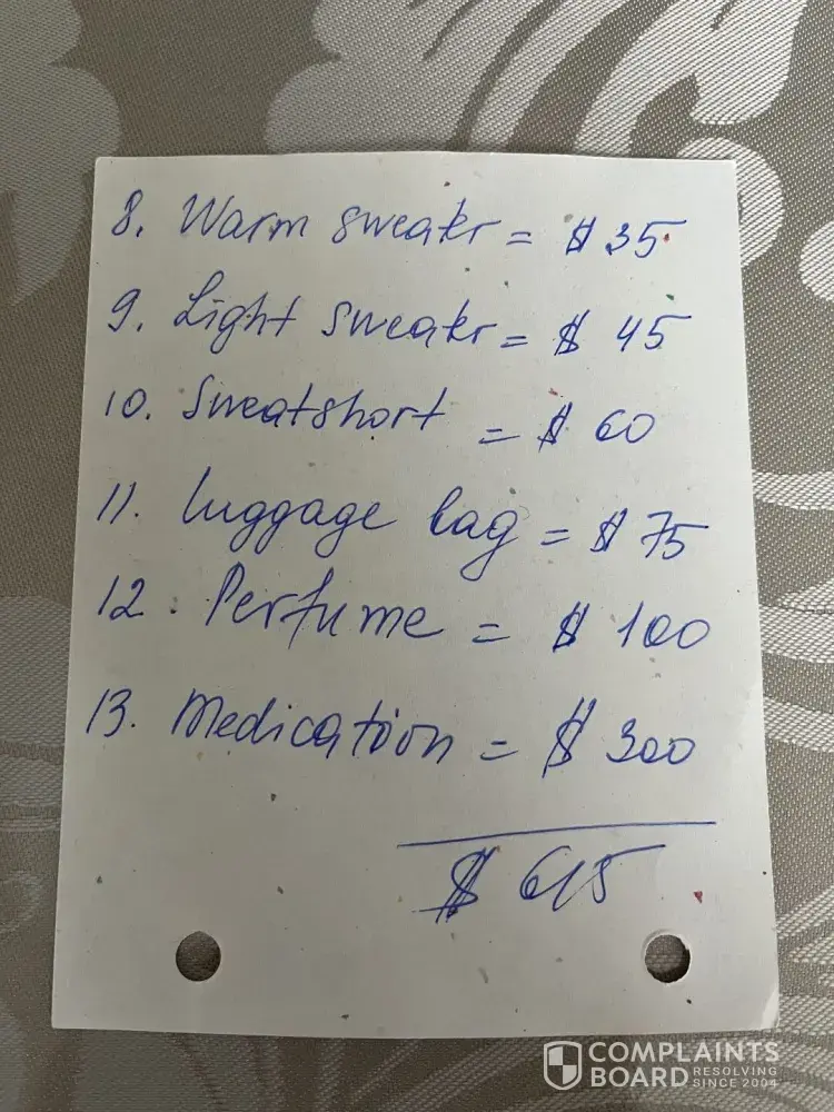During this delay, our child became ill due to lack of clothing appropriate for Korea’s cold and Thailand’s heat. We had to seek medical attention . Medical expenses and expenses incurred during the loss of luggage total 981RMB.