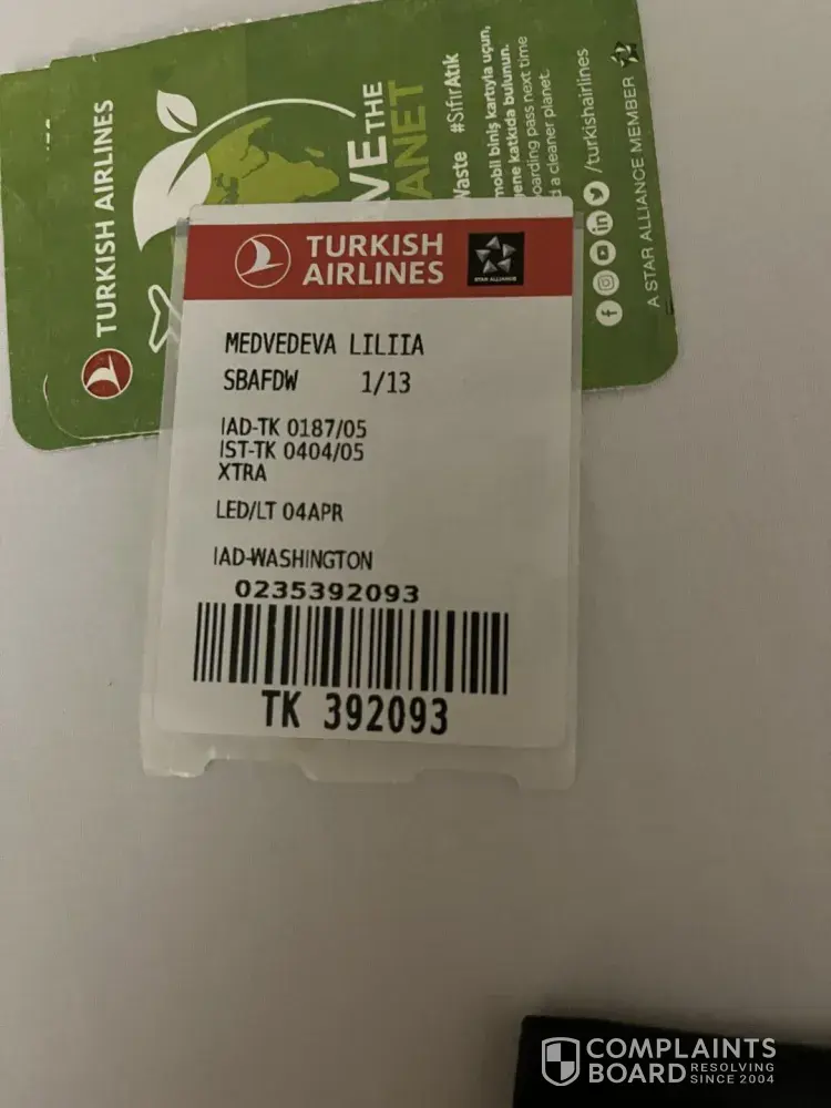 Hello, I arrived at the Washington IAD airport on 5.04.25​ FLight number TK 404 with the connecting flight TK 187 The luggage from that flight according to the info desk was on the carousel 21. But my luggage wasn’t there. The airport clerk checked the information regarding the luggage and he said it indicated that my bag arrived. Anyway, I did...