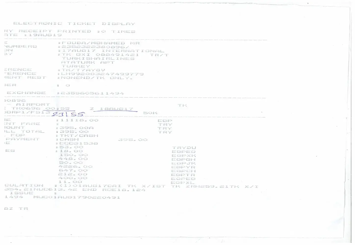 We had our tickets referenced: TXKQ6P (for myself, Mrs Giti Dallali ) and U2L8ZN (my husband, Mr Mansoor Dallali and my children), all together a family of five people.