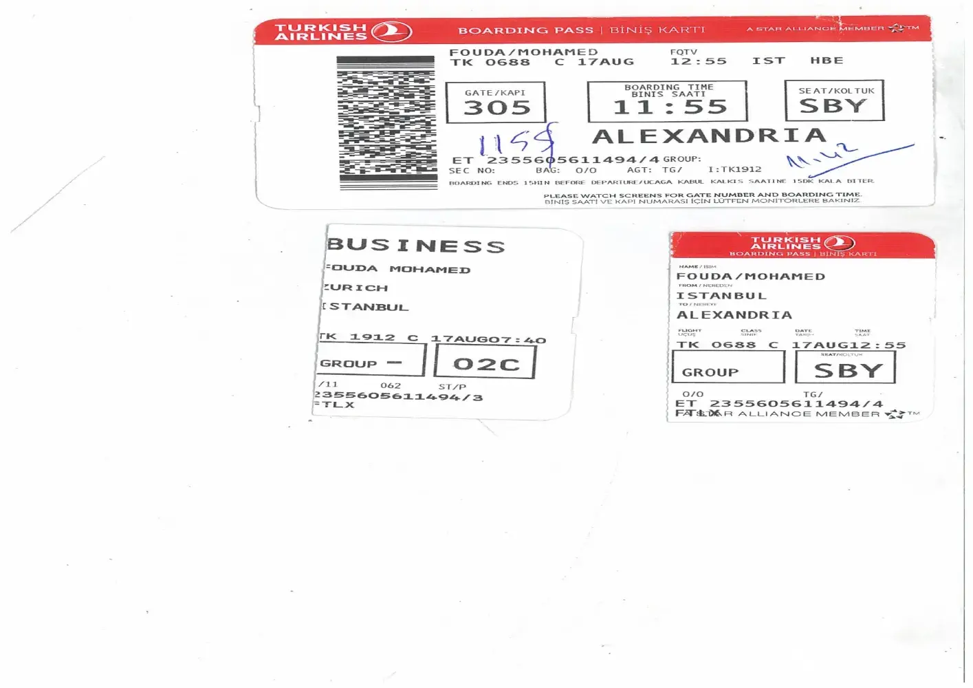 i have a business class confirmed ticket from Zurich to Borg El Arab airport passing Istanbul & i made checked in at Zurich Airport with 2 Boarding pass .