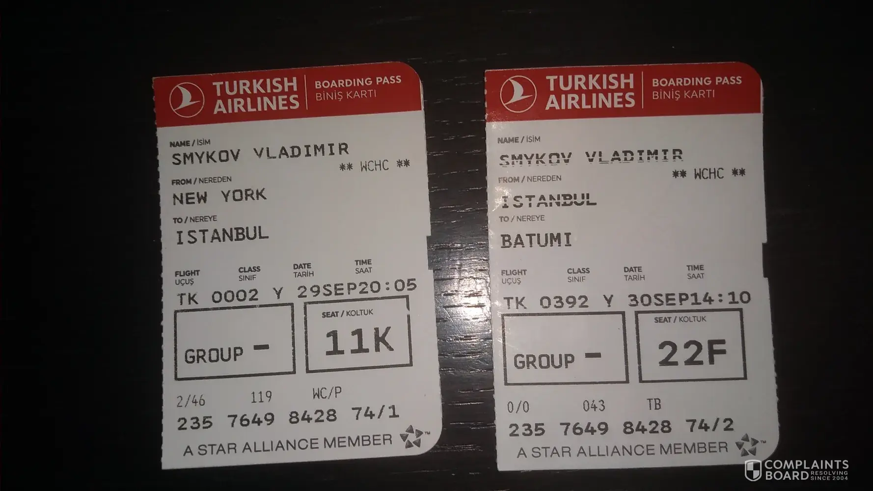 TK 002 NY - Istanbul and TK 392 Istanbul - Batumi